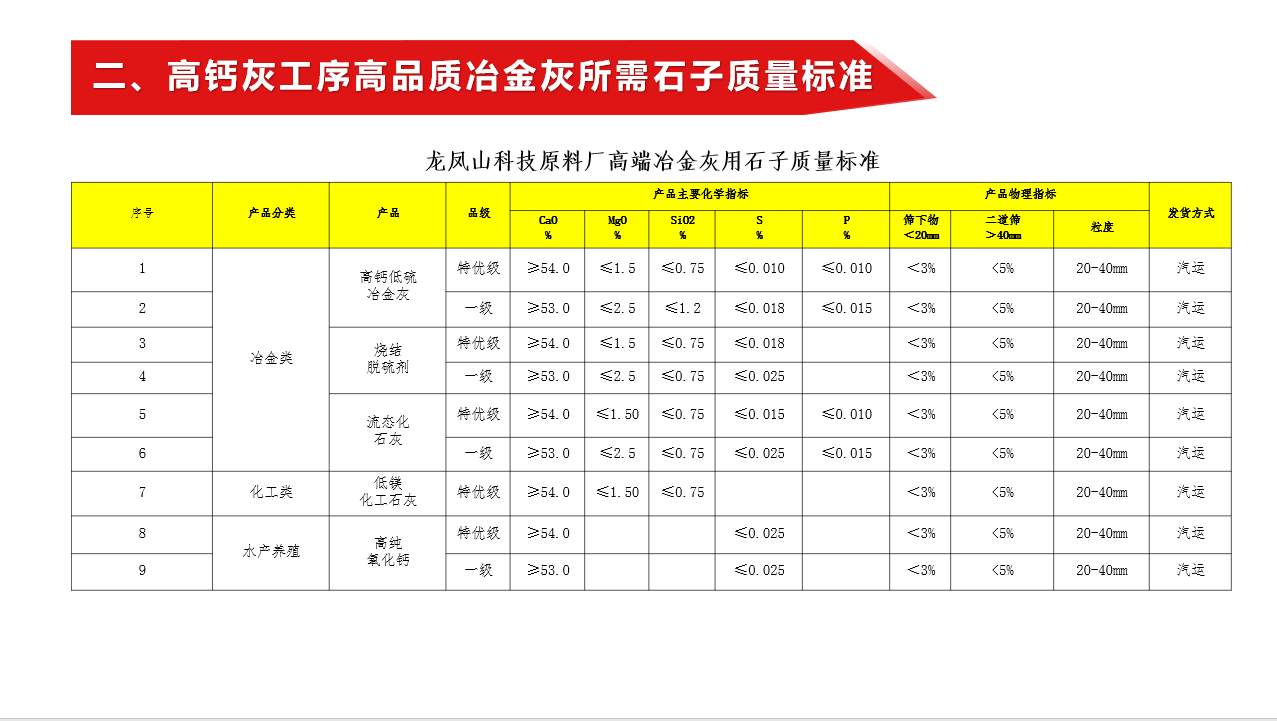 河北龙凤山铸业有限公司高钙灰工序高端产品策划